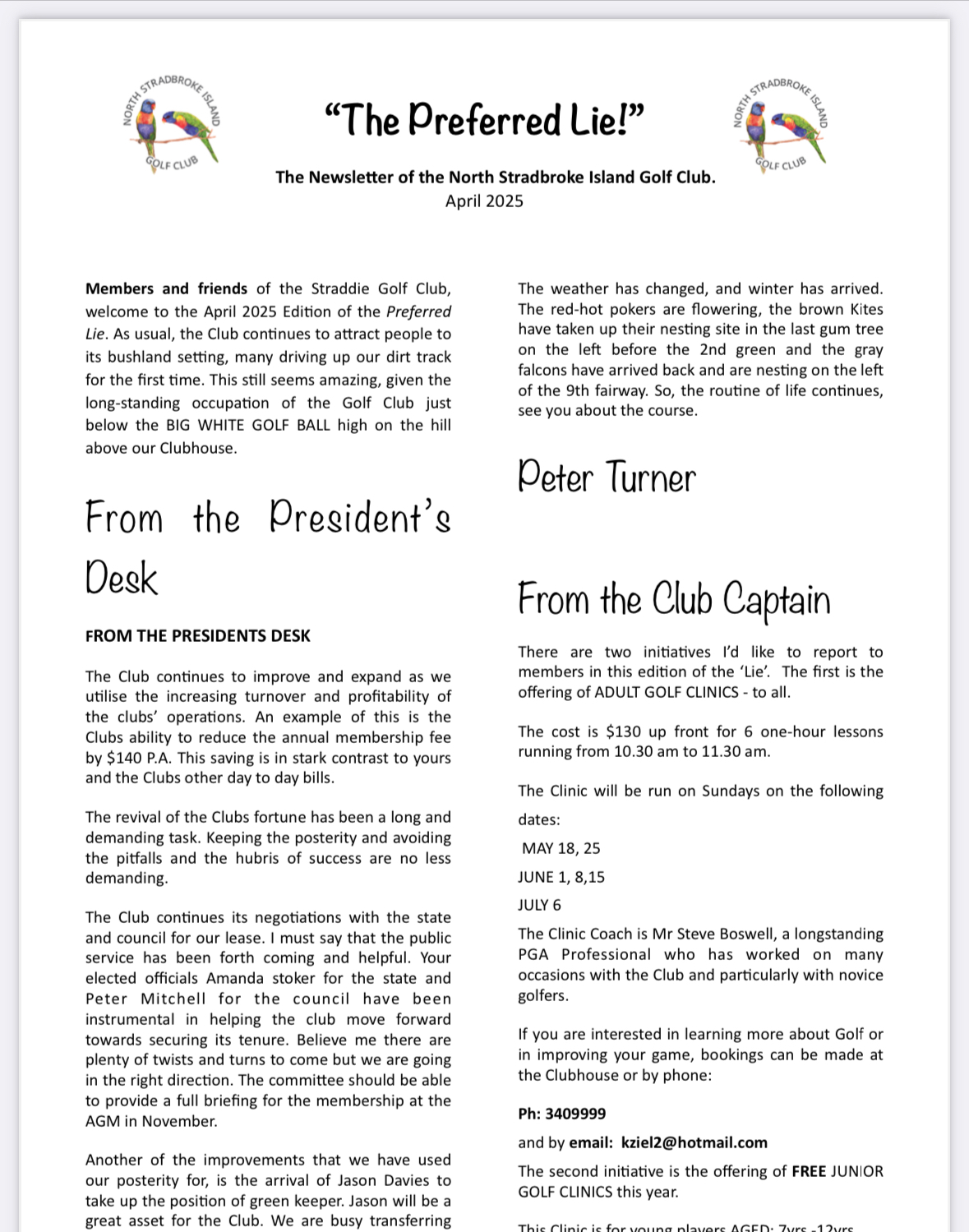 The Golf Club publishes a quarterly newslettter. It is filled with all that’s been happening around the club. It generally covers articles from the President, the Captain, the Management team and our editor. Subscription is free and available to everyone.