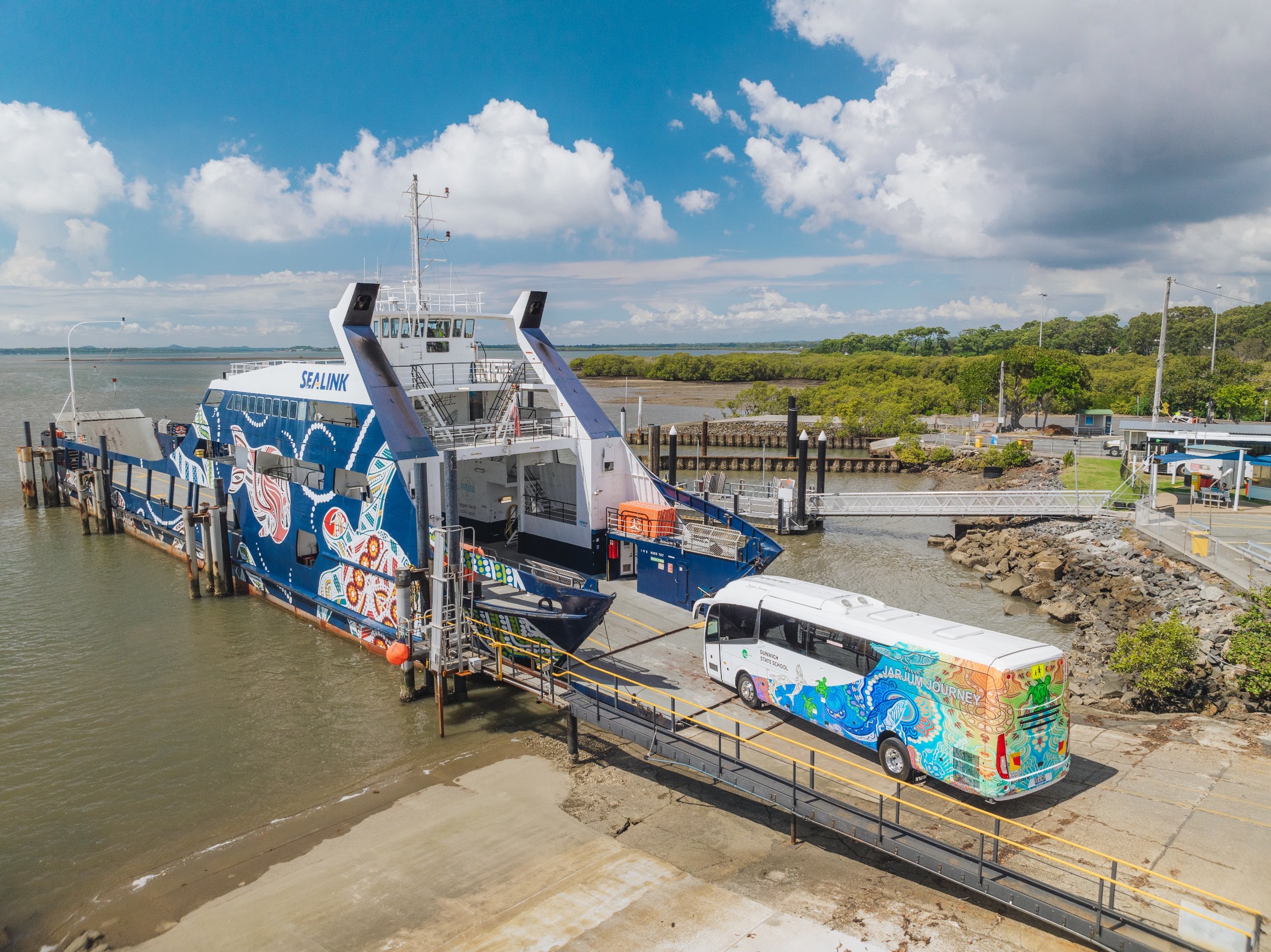 The trip on the vehicle ferry takes approx. 45-50 minutes via SeaLink Stradbroke Ferries.