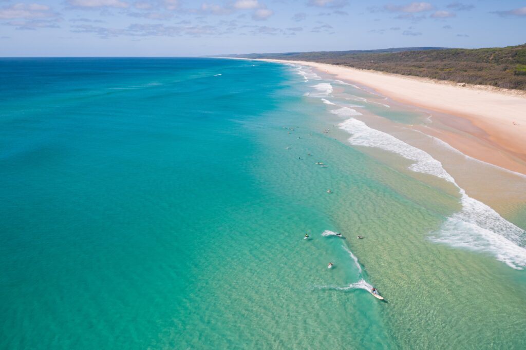 Located off the coast of Brisbane, it has been described by visitors as Noosa and Byron Bay rolled into one! There are miles of soft white sand beaches, perched lakes, gorges, dunes, untamed bushland and scenic cliff tops where you could very well spot whales enjoying the warm seas.